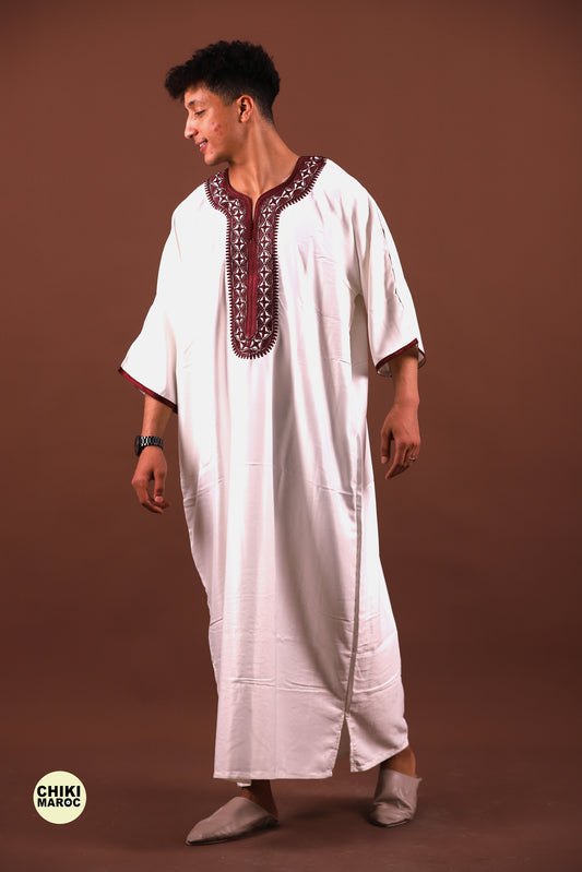 White & Red Moroccan Thobe for Men - Traditional & Elegant DjellabaRegular price $95.00 USDRegular priceUnit price / per-