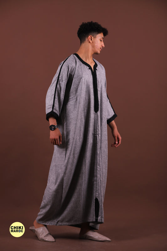Grey Moroccan Linen Kaftan for Men - Traditional & Elegant DjellabaRegular price $110.00 USDRegular priceUnit price / per-