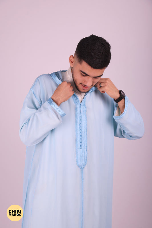 Elegant sky-Blue Moroccan Thobe, Muslim Kaftan for MenRegular price $98.00 USDRegular priceUnit price / per$120.00 USDSale price $98.00 USDSale